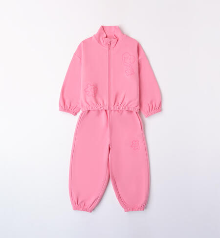 Tuta per bambina iDO 9 mesi – 8 anni in felpa. La felpa presenta apertura frontale con zip. Il pantalone ha vita elasticizzata, tasche laterali e polsini elasticizzati sul fondo. Stampa bubble