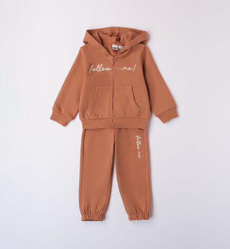 Tuta bambina realizzata in felpa 100% cotone. La giacchina ha l’apertura con zip e stampa glitter. Tasca a marsupio. Il pantalone lungo ha l’elastico in vita e coulisse. Pesantezza autunnale