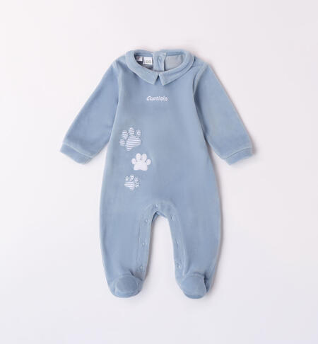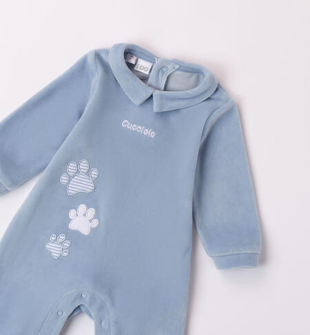 Tutina con piedini iDO per neonato realizzata in ciniglia. La tutina è dotata di apertura sulla schiena e nell’interno cosce con bottoni a pressione per agevolare il cambio e la vestizione. Il modello è realizzato in fantasia tinta unita con ricamo di zampette. Perfetta come idea regalo o per completare il Corredino neonato del futuro nascituro. Scopri tutta la selezione di Tutine neonato