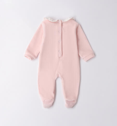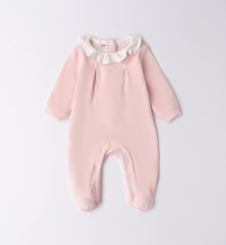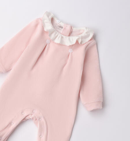 Tutina per neonato iDO 0-18 mesi in ciniglia. Il modello presenta apertura sul retro e nel sottogamba con bottoni a pressione per agevolare il cambio e la vestizione