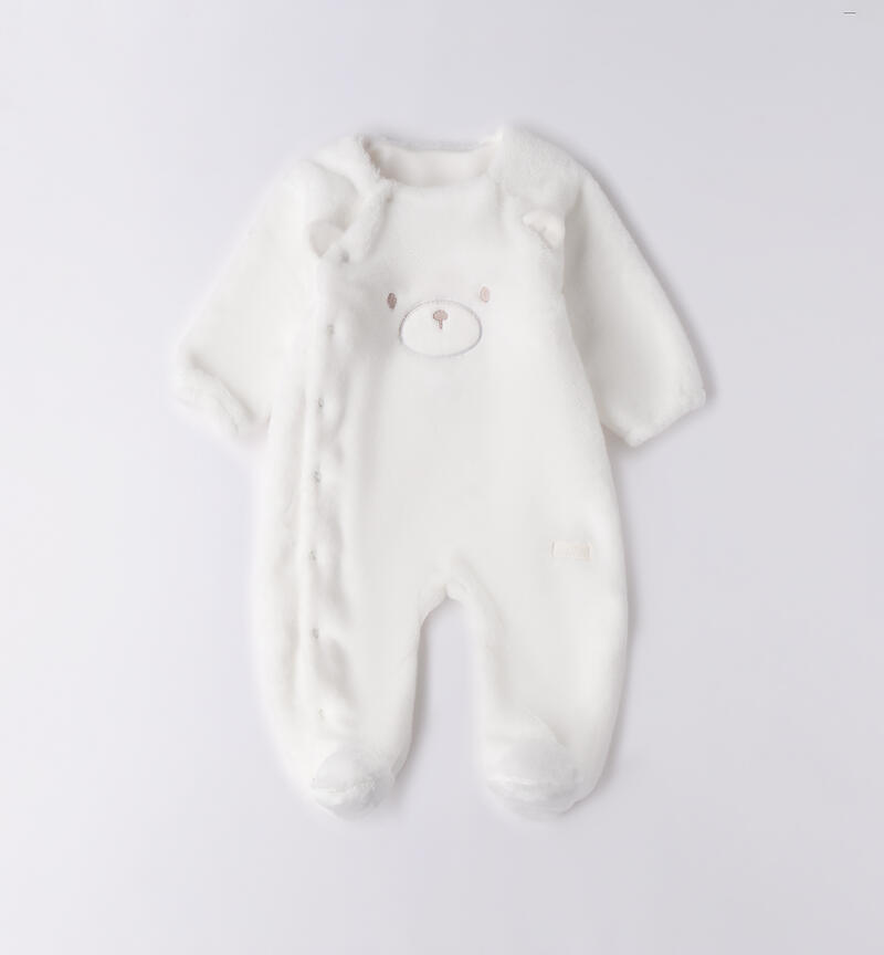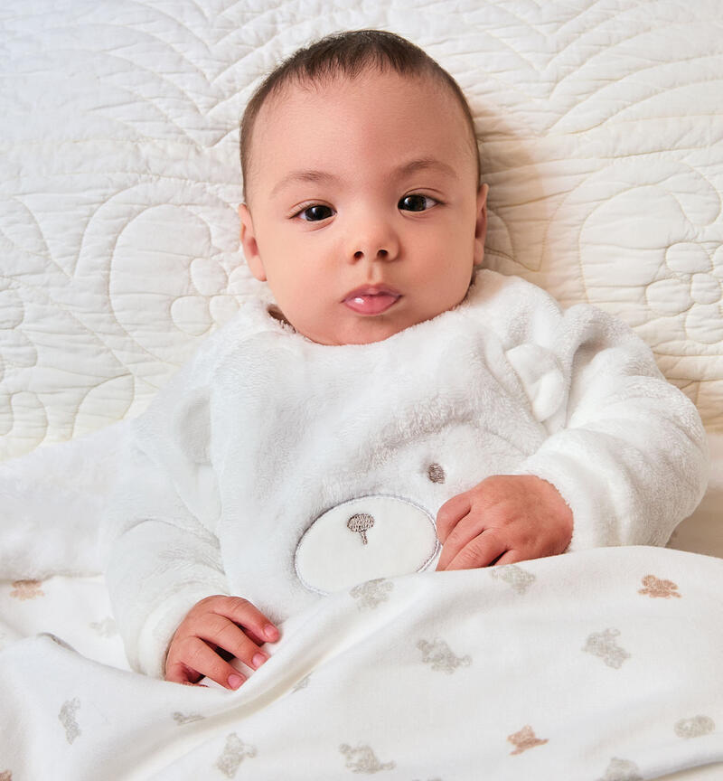 Tutina neonati modello unisex Minibanda realizzata in morbido tessuto con applicazione orecchie e ricamo. Il modello presenta apertura davanti e nel sottogamba con bottoni a pressione per agevolare il cambio e la vestizione. Il prodotto non contiene materiali di derivazione animale. Animal free รจ un marchio di LAV www.animalfree.info