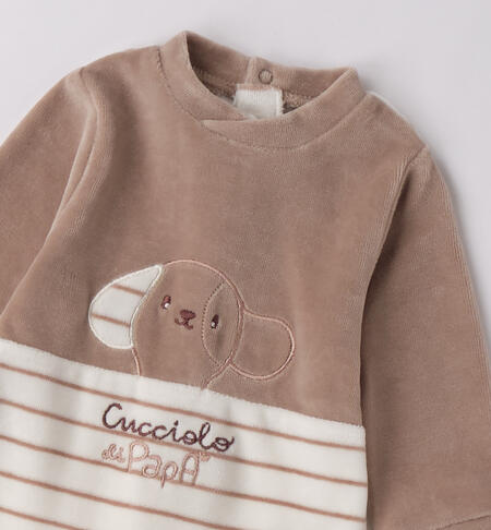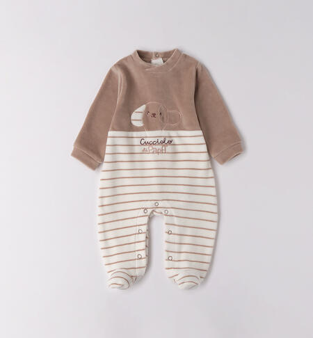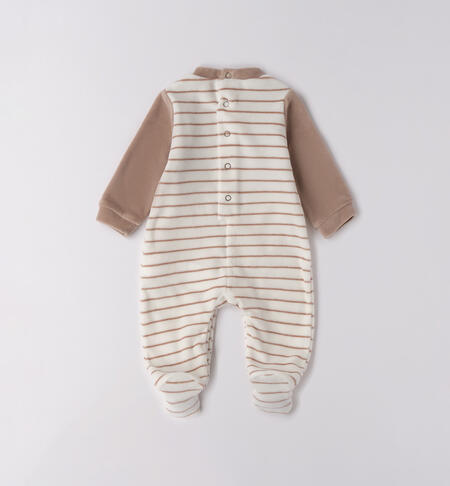 Tutina per neonato iDO 0-18 mesi in ciniglia. Il modello presenta apertura sul retro e nel sottogamba con bottoni a pressione per agevolare il cambio e la vestizione.