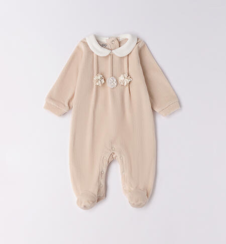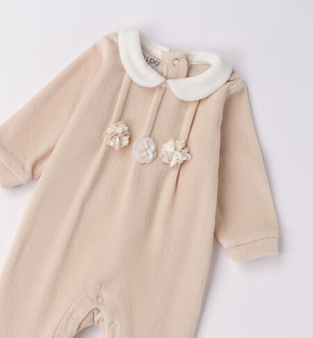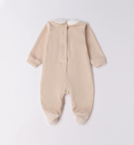 Tutina per neonato iDO 0-18 mesi in ciniglia. Il modello presenta apertura sul retro e nel sottogamba con bottoni a pressione per agevolare il cambio e la vestizione.