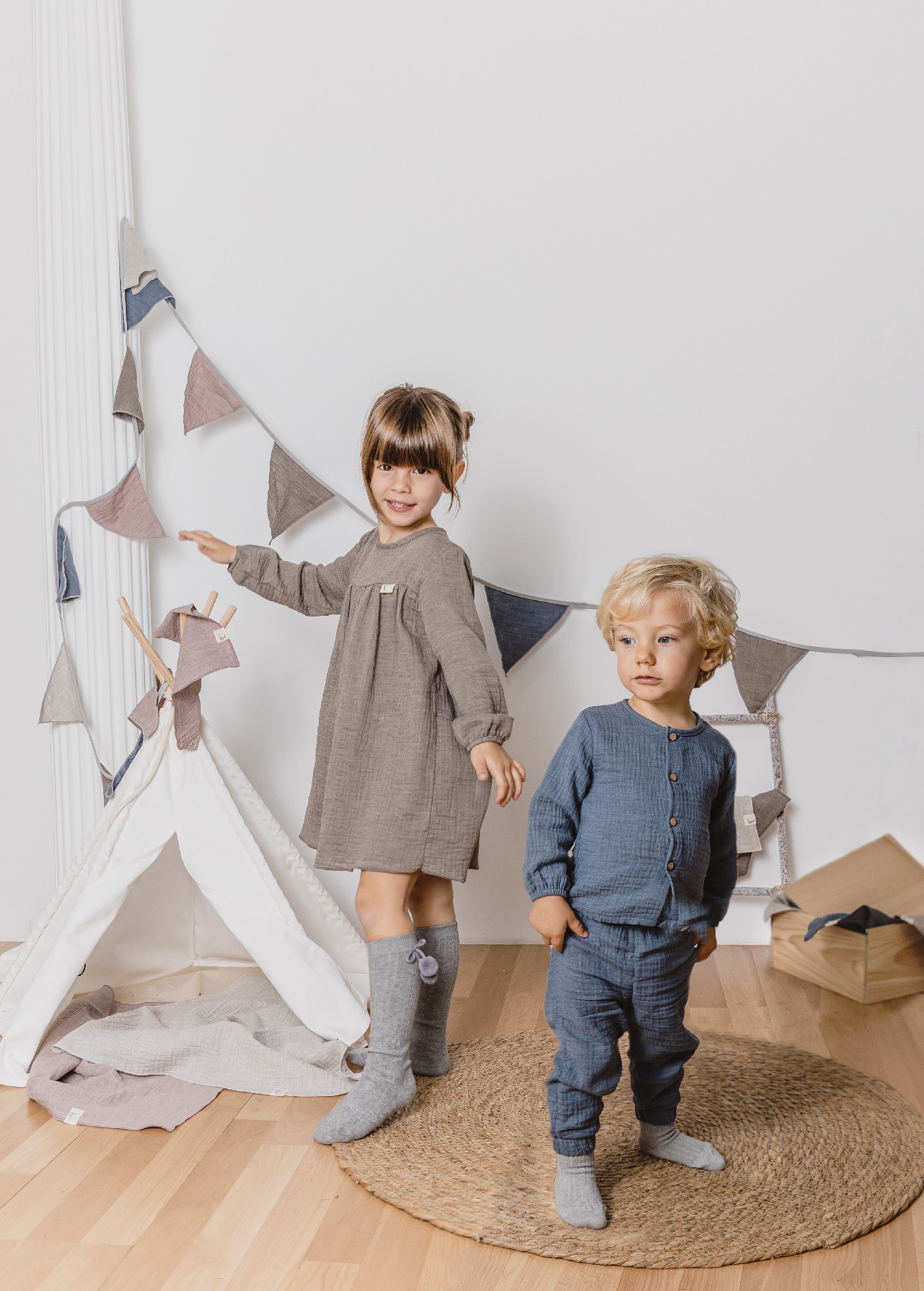 Vestito in mussola di cotone, adatto a tutte le stagioni.